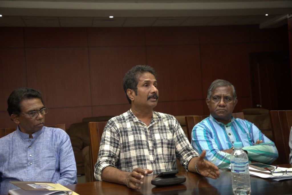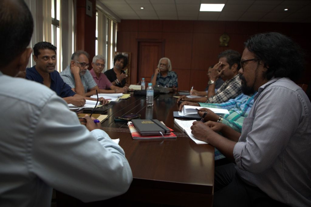 The following gentlemen participated in this discussion: Chairman of the National Arts Council Keerthi Welisarage, Chairman of the National Literary Subcommittee Kamal Perera, Chairman of the National Drama Subcommittee Senior Lecturer Prasanna jith Abeysooriya, Chairman of the National Visual Arts Subcommittee Prageeth Rathnayake, Chairman of the National Television Subcommittee Sunil Costa, Vice Chairman of the National Music Subcommittee Professor Saman Panapitiya, Chairman of the National Dance and Ballet Subcommittee Dr. Ravibandu Vidyapathi, Chairman of the National Intangible Cultural Heritage and Traditional Arts Subcommittee Chandrasoma Binduhewa, Chairman of the National Film Subcommittee Dr. Seneh Dissanayake Bandara, Chairman of the National Radio Subcommittee Kapila M. Gamage, the Minister’s Personal Secretary Anil Abeygunawardena, and Coordinating Secretary Premaratne Tennakoon