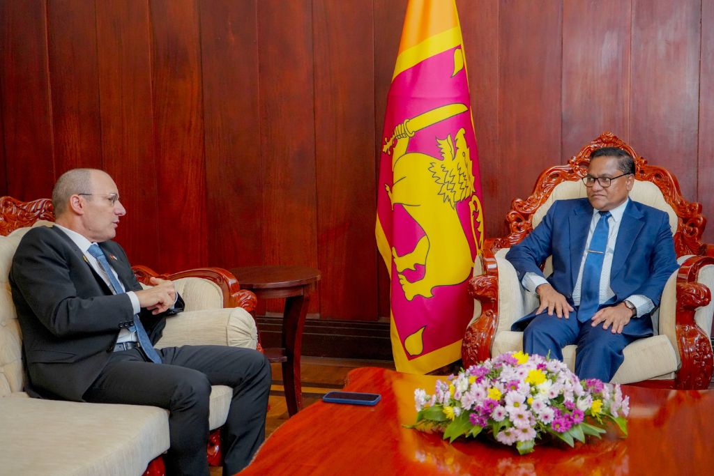 Reuven Azar, who recently presented his credentials as the Ambassador of the State of Israel to Sri Lanka, visited the Ministry to meet with the Minister of Foreign Affairs, Foreign Employment, and Tourism, Wijitha Herath. During this meeting, a successful discussion was held to foster mutually beneficial growth in various sectors between the two countries, including economic, security, and employment areas.