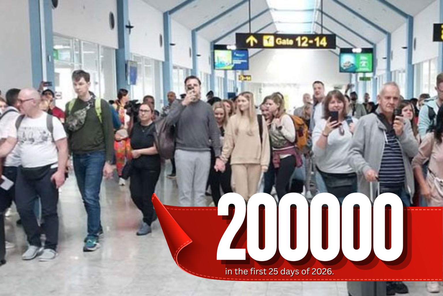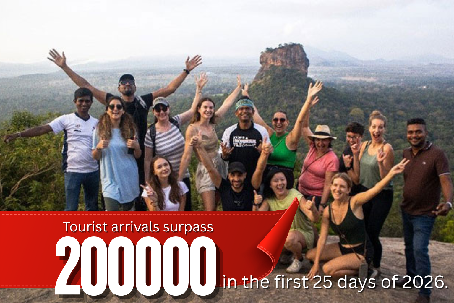සංචාරකයින් 223,645 දෙනකු 2026 වසර ආරම්භ වූ පළමු දින 25 තුළ ශ්රී ලංකා මෙරටට පැමිණ ඇති බව ශ්රී ලංකා සංචාරක සංවර්ධන අධිකාරිය සඳහන් කර සිටී.