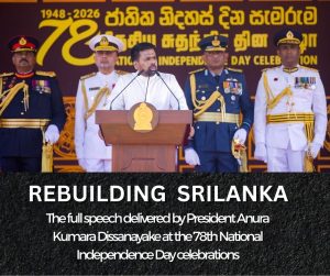 Sinhala News “ගොඩනඟමු ශ්රී ලංකා”78 වන ජාතික නිදහස් දින උලෙළ අමතා ජනාධිපති අනුර කුමාර දිසානායක මහතා සිදු කළ සම්පූර්ණ කතාව Read More » February 4, 2026 No Comments